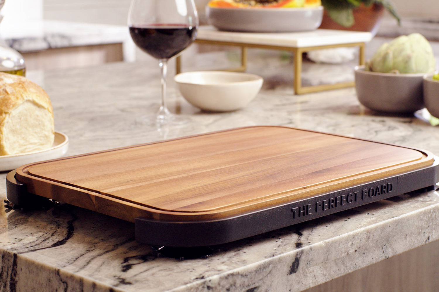 The Perfect Board is my answer to years of slipping, clunky cutting boards. With a patent-pending non-slip frame, it’s designed around what I value most in the kitchen — safety, precision, and quality. It’s crafted by a chef, for people who actually cook.
